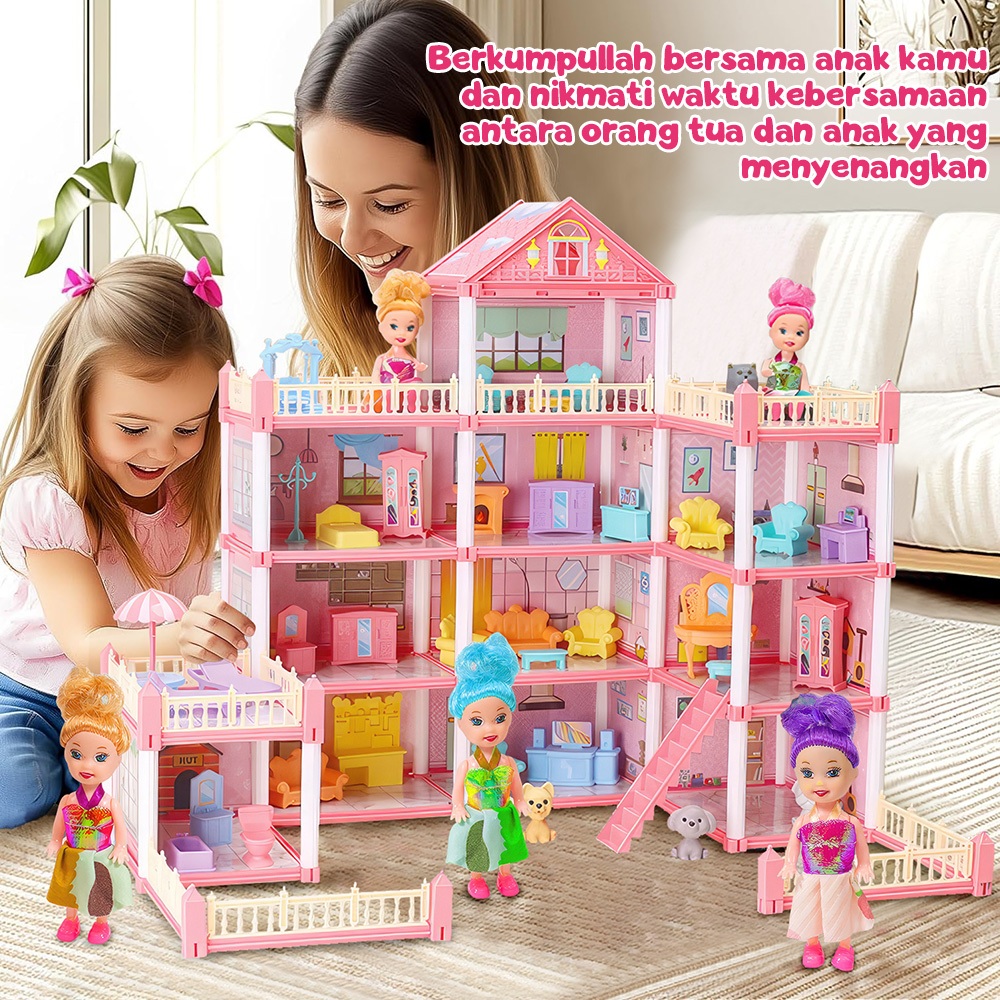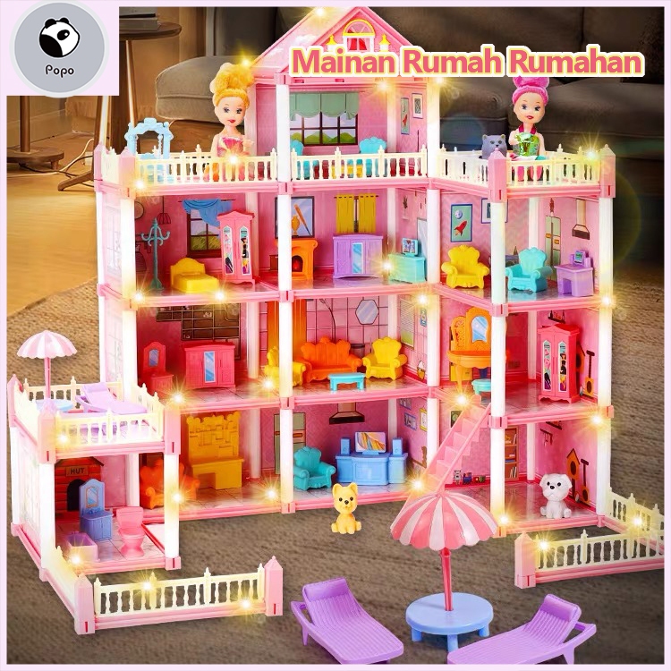 Mainan Rumah Rumahan 3D Princess Big Villa DIY Rumah Boneka Castle Bermain Rumah Dengan Slide Yard Kit Dirakit Rumah Bon