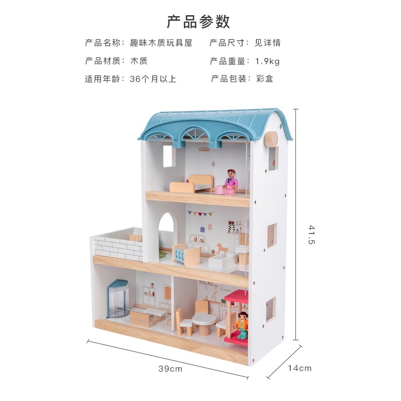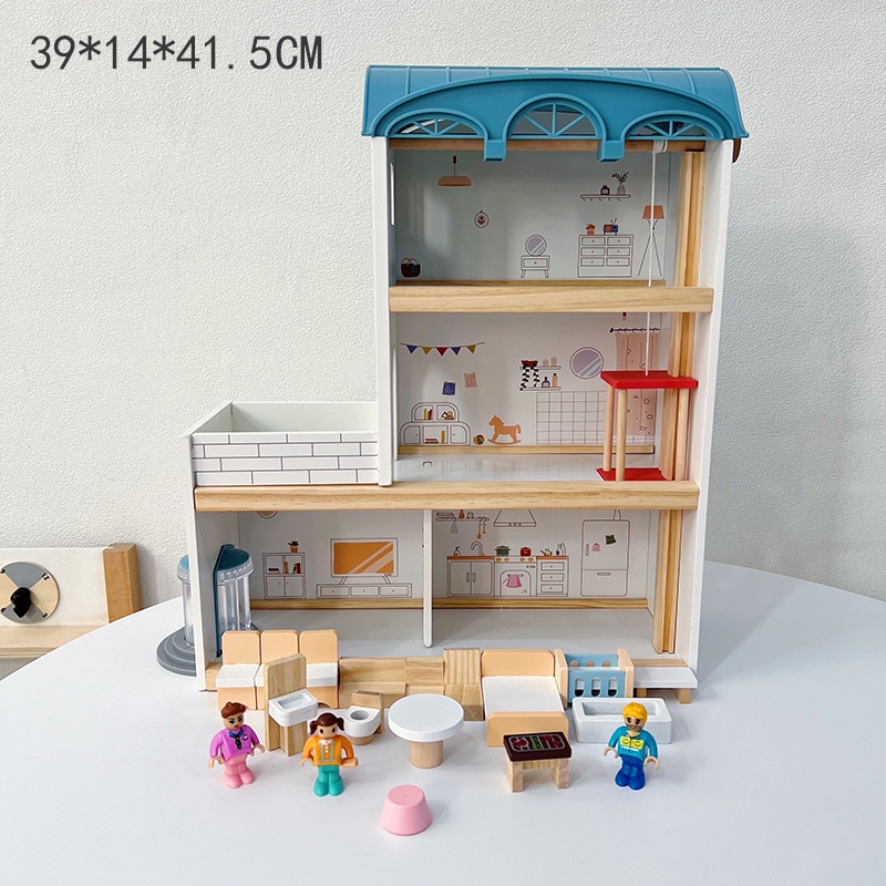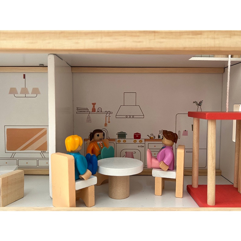 Wooden Doll House 42 pcs Villa 3 lantai ada liftnya - mainan rumah boneka ada liftnya - mainan edukasi pretend play