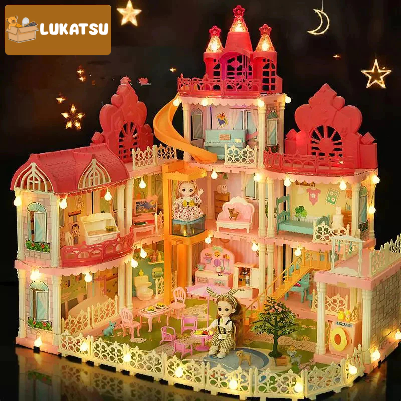 Mainan Rumah Boneka Mainan Castle Boneka Set Box Rumah Princess Rumah Boneka Villa Princess Castle