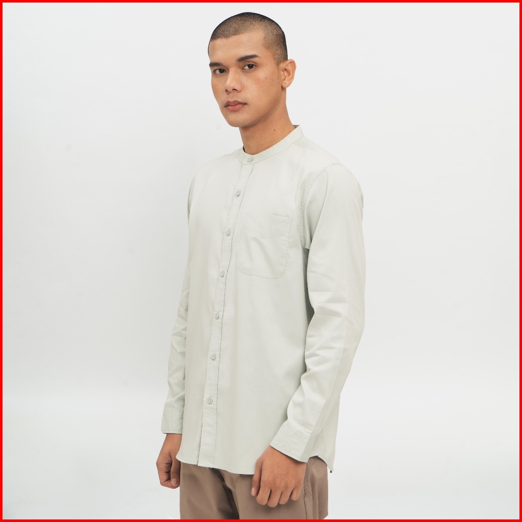 M231 Kemeja Pria Koko Shanghai Polos Panjang Hijau Mint 0915c