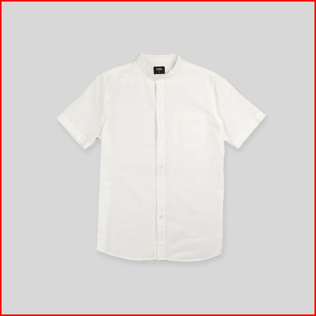 Cutoff Hamzah Kemeja Koko Rami Basic Polos Pria Pendek