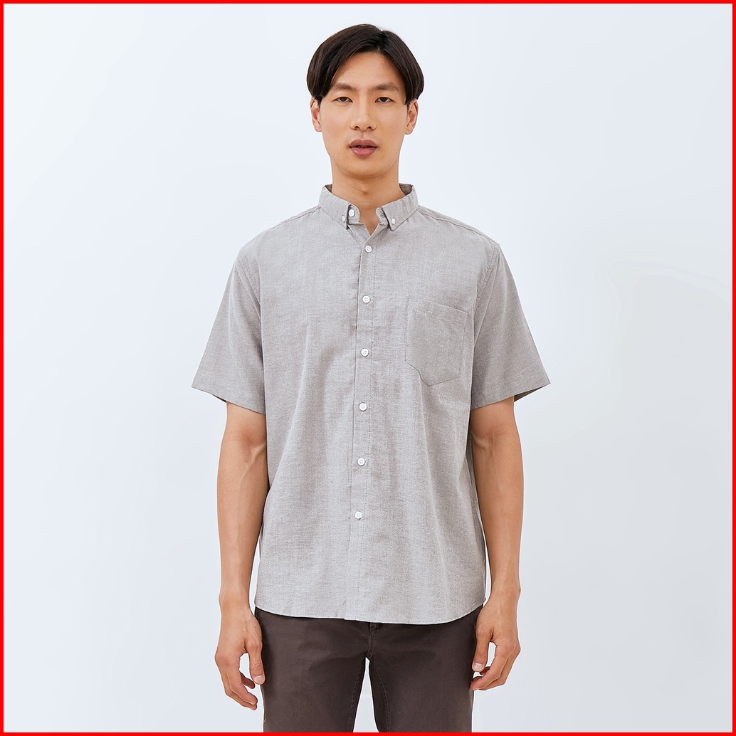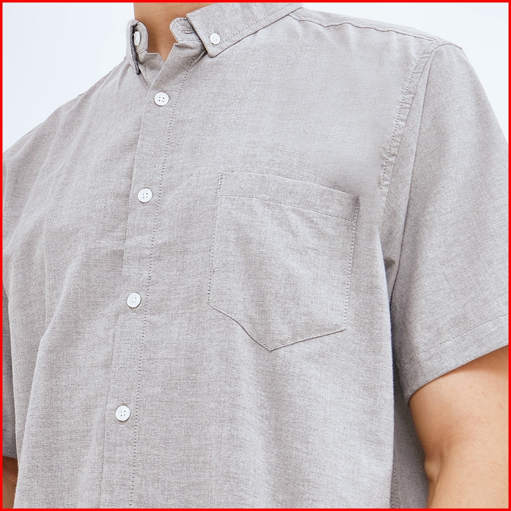 M231 Kemeja Pria Basic Polos Oxford Pendek Abu 1457e