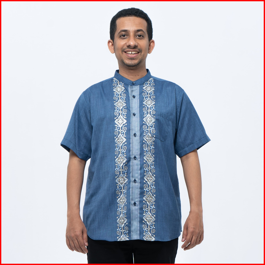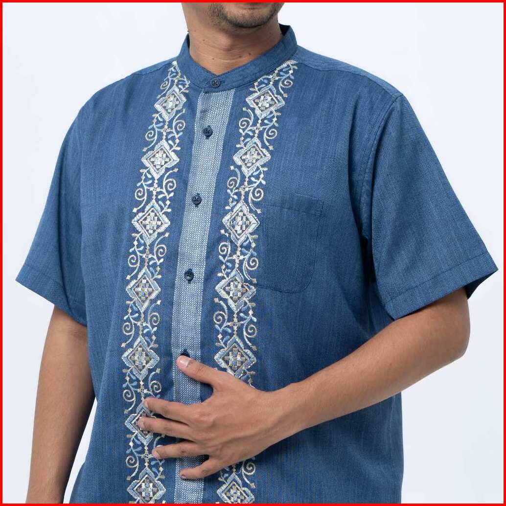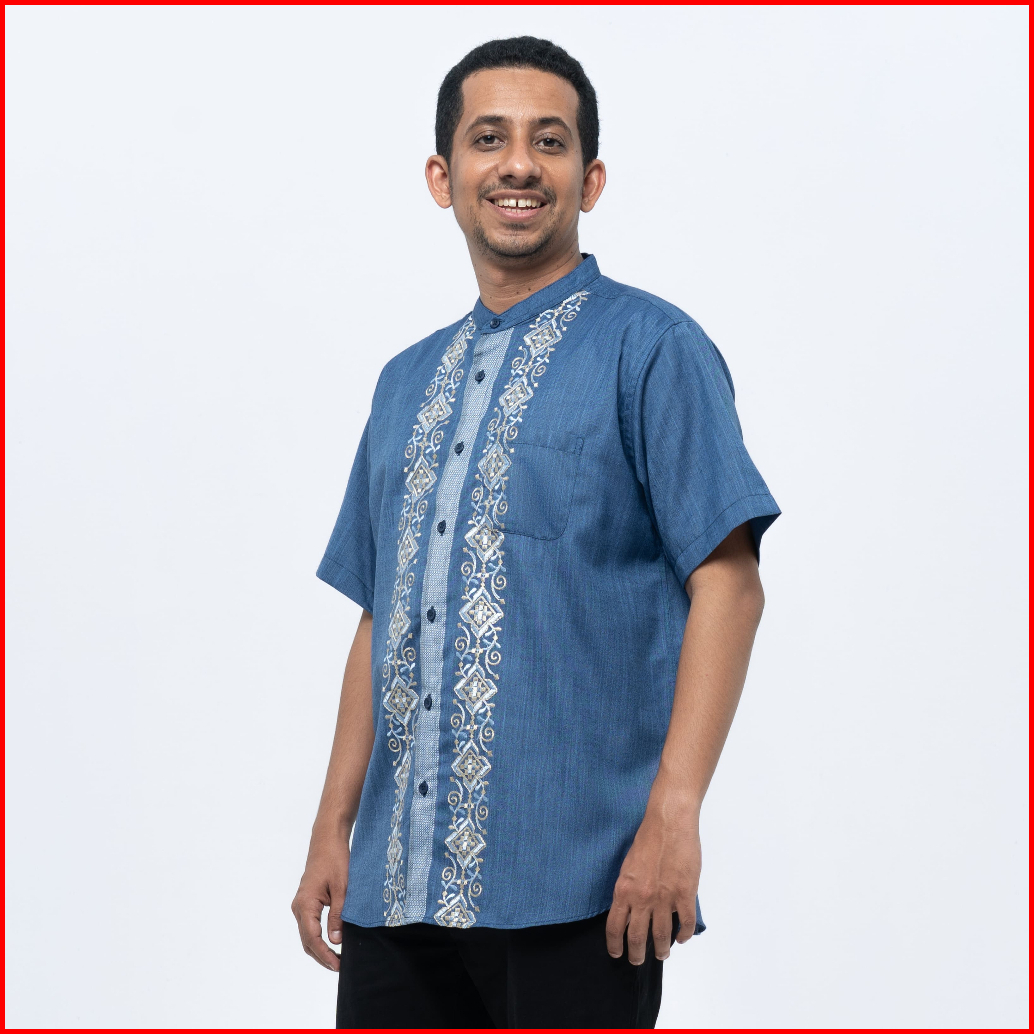 M231 Kemeja Pria Koko Habib Jafar Couple Pendek Navy 0356