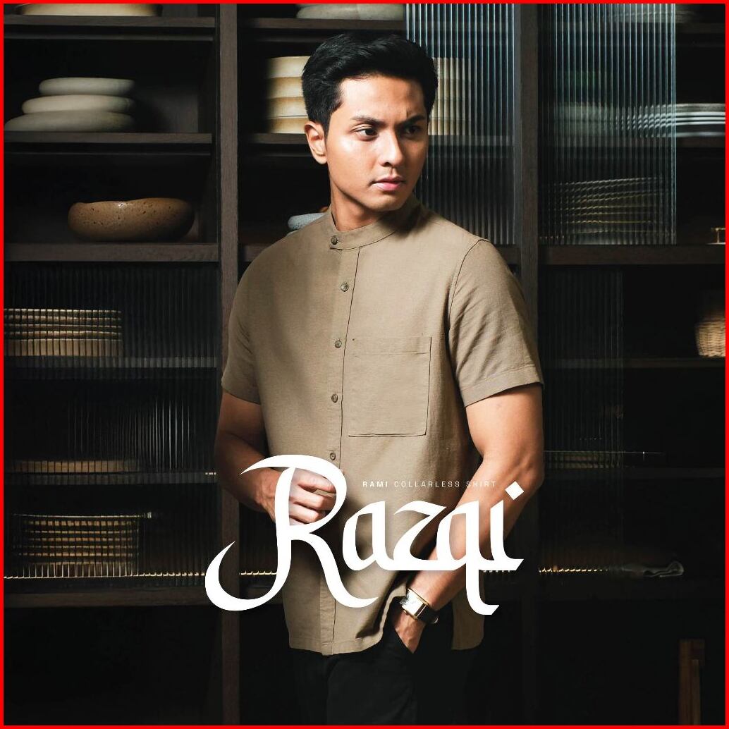 Cutoff Razqi Rami Collarless Shirt Kemeja Koko Pria Lengan Pendek