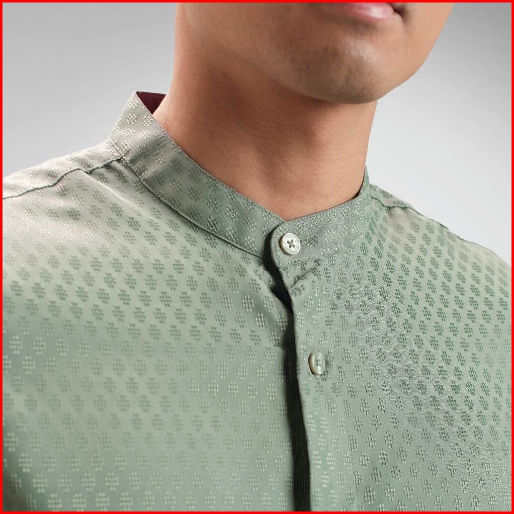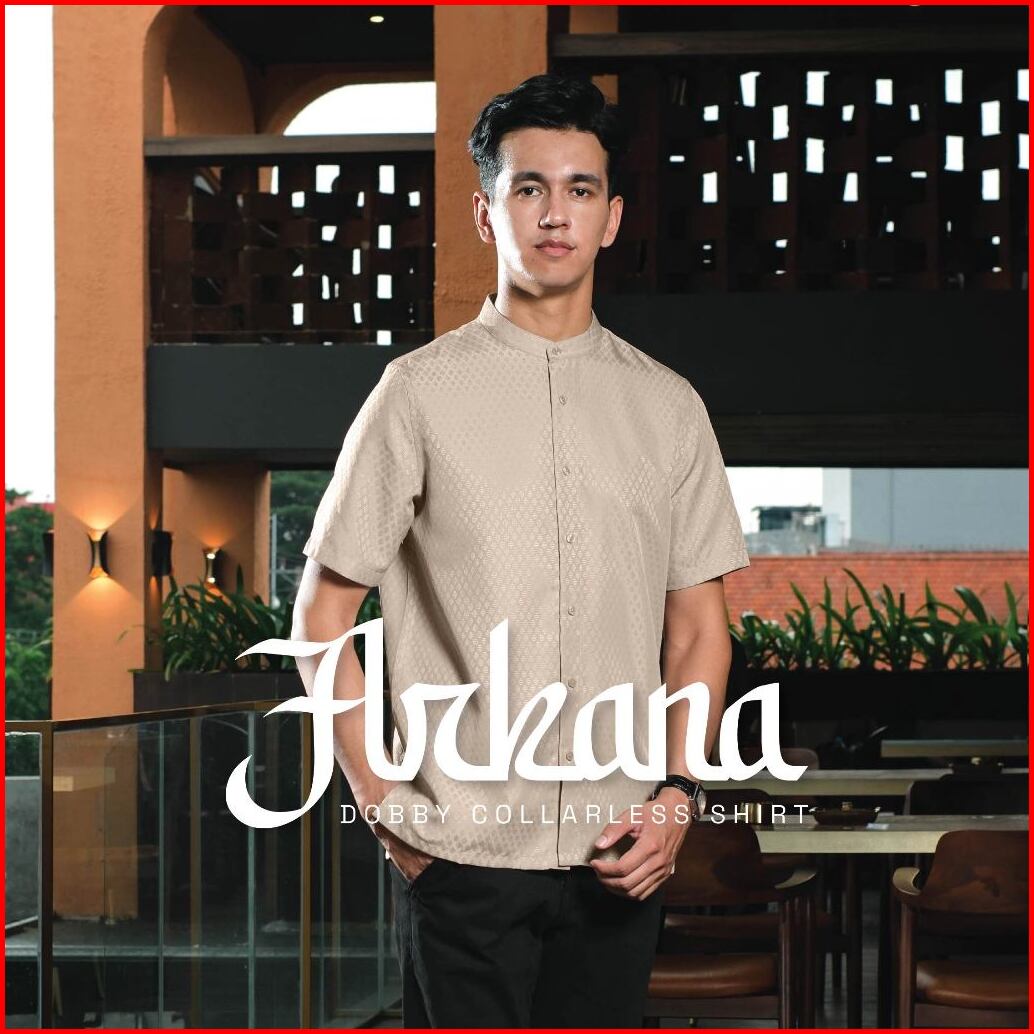 Cutoff Arkana Dobby Bordir Collarless Shirt Kemeja Koko Pria Motif Lengan Pendek