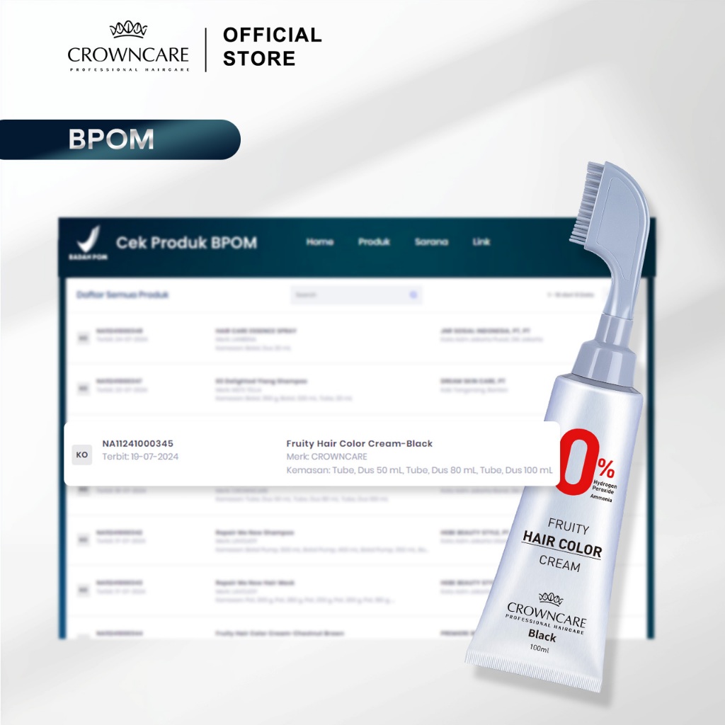 Crowncare Hair Coloring Cream 100+100ml, Pewarna Rambut Dengan Sisir, Formula Herbal Yang, Tidak Merusak Rambut, Alami Dan Tahan Lama, Bebas Amonia & SLS