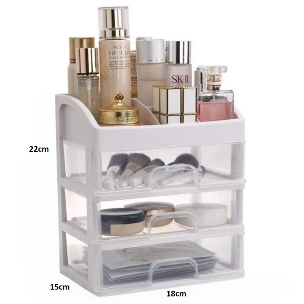 Rak Kosmetik Laci Kosmetik Plastik 3 Susun Mini - Rak Makeup Ukuran 18 x 15 x 22