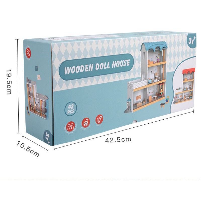 wooden doll house 42 pcs villa 3 lantai ada liftnya mainan rumah boneka anak by gingerinfant