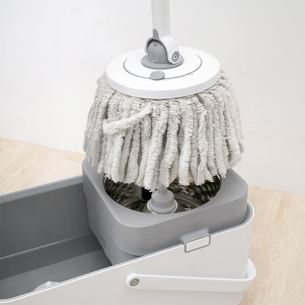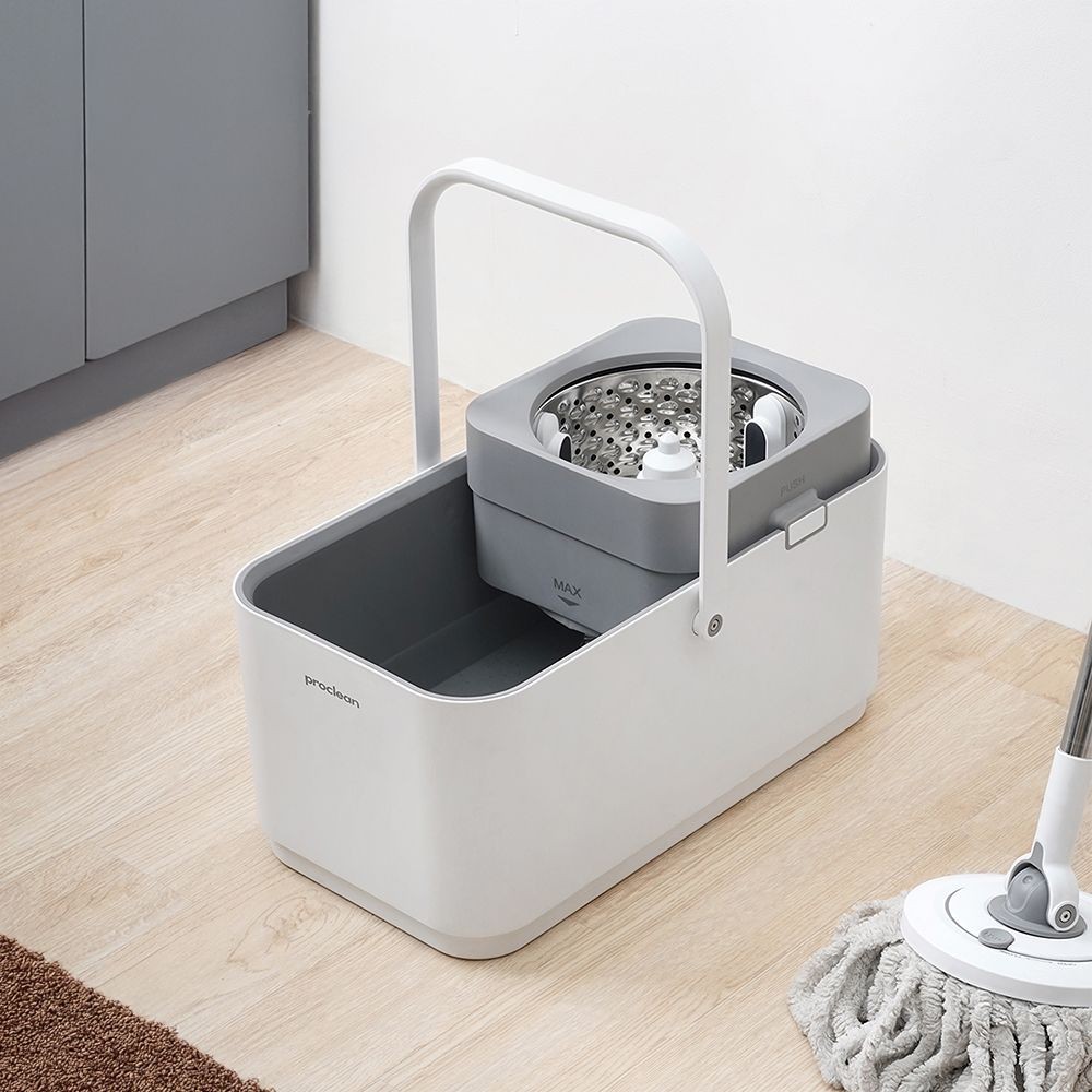 Proclean Set Alat Pel Putar Dengan Ember Peras & Brush - Abu-Abu Kain Pel Spinning Mop With Bucket Pembersih Lantai Alat