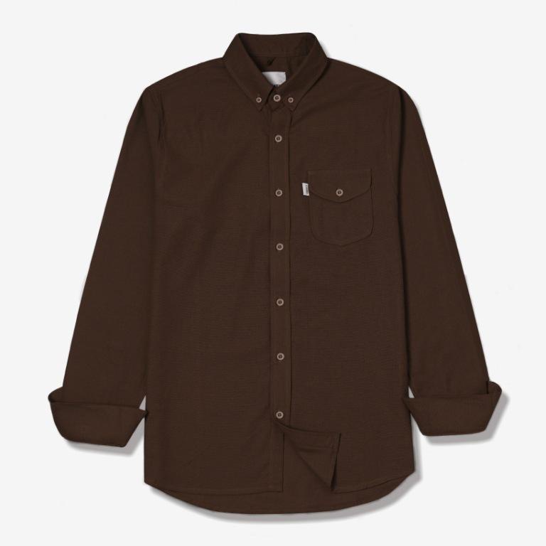 HIGHTY Dark Brown Plain Cotton Shirt Kemeja Lengan Panjang Bahan QUALITY PREMIUM