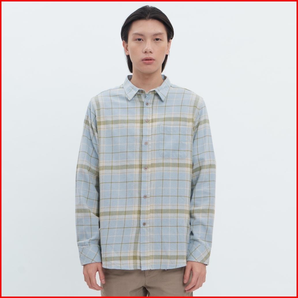 M231 Kemeja Pria Flannel Panjang Biru 0295