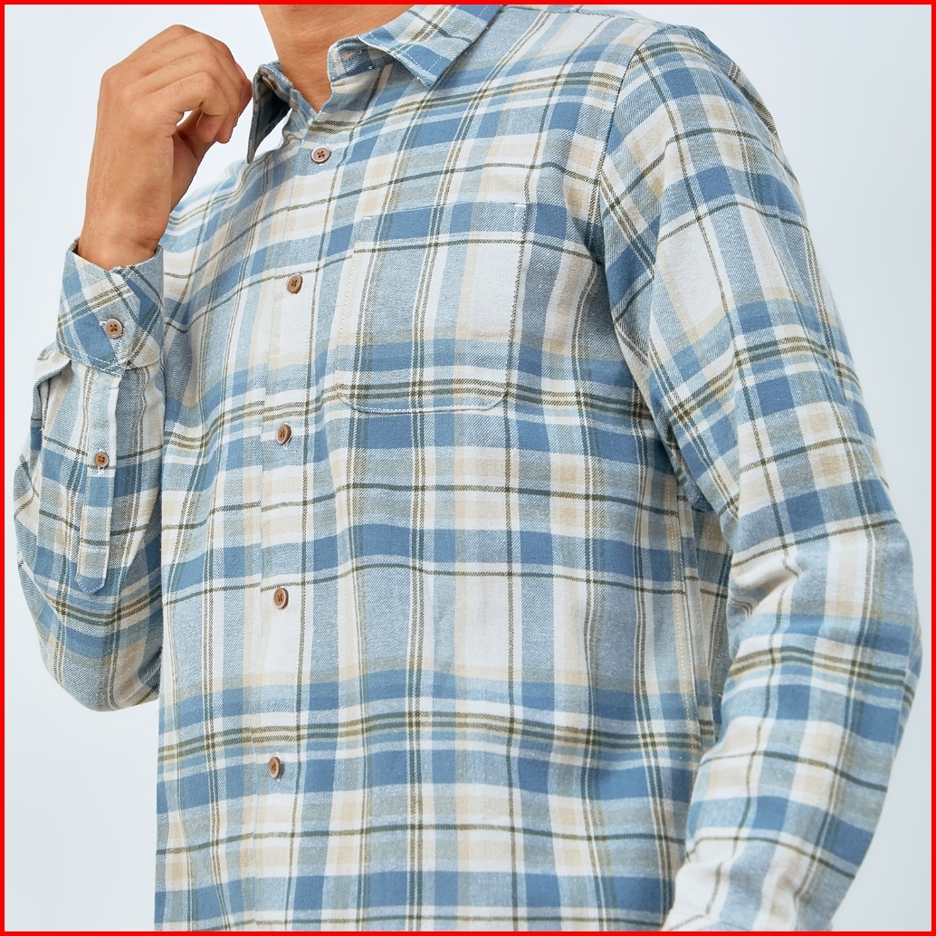 M231 Kemeja Pria Flannel Panjang Biru 0033