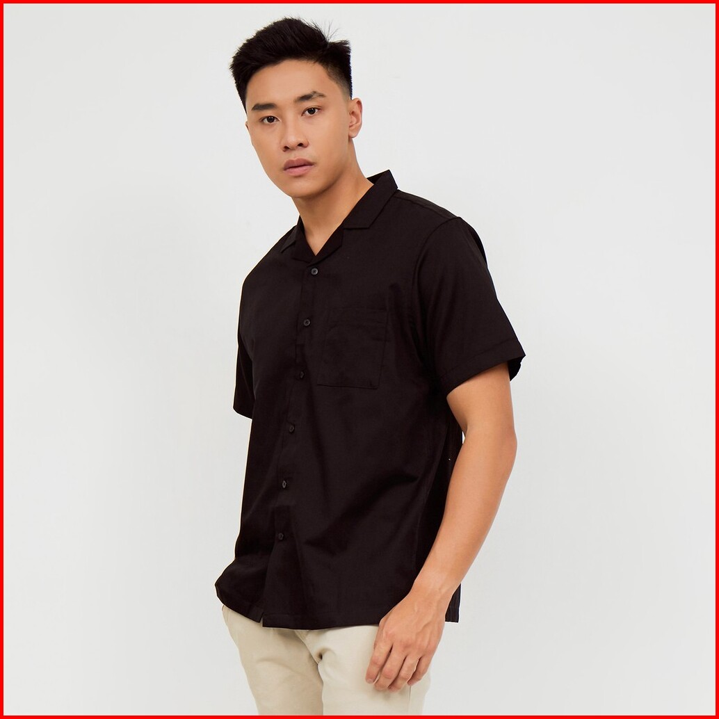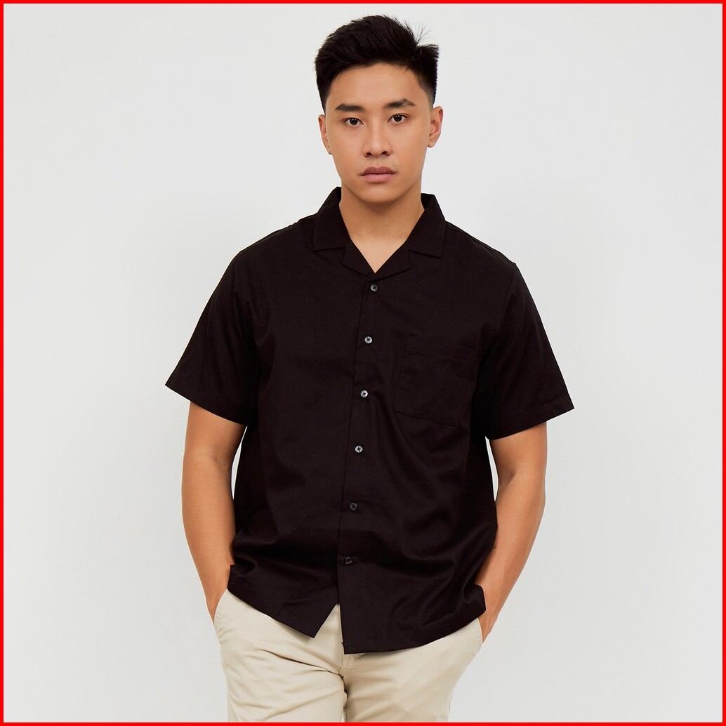 M231 Kemeja Pria Basic Polos Hawaii Oversized Pendek Hitam 2190f