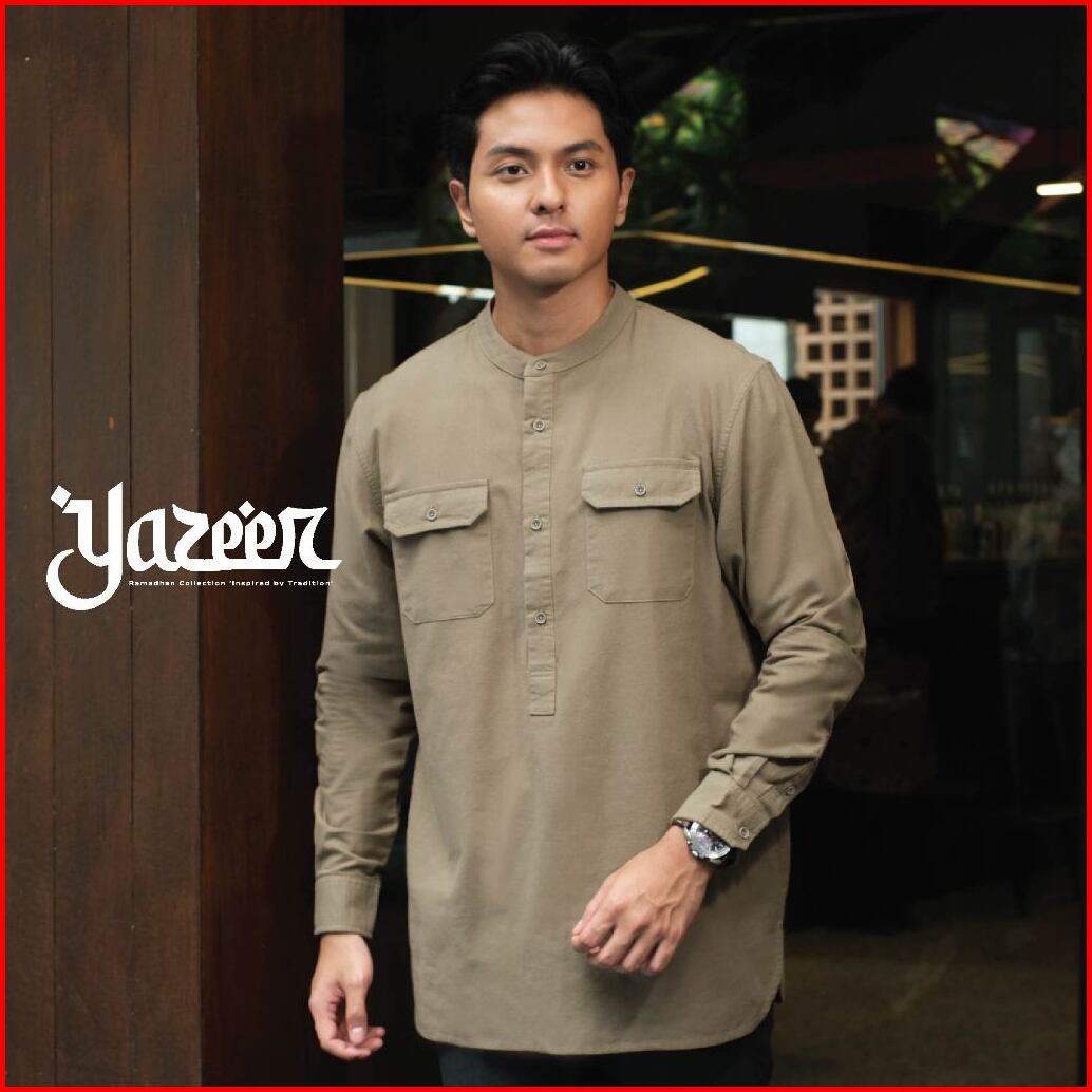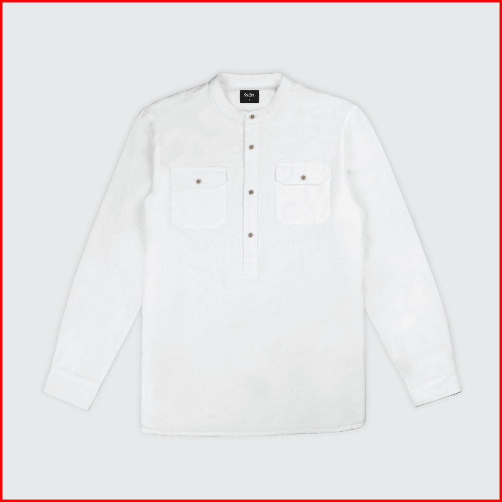 Cutoff Yazeer Collarless Shirt Kemeja Koko Cotton Rami Formal Basic Polos Pria Lengan Panjang