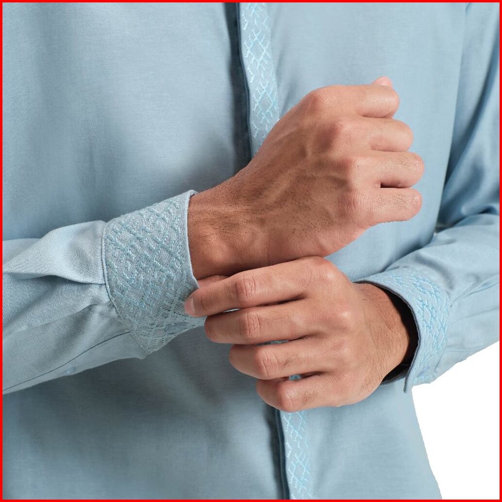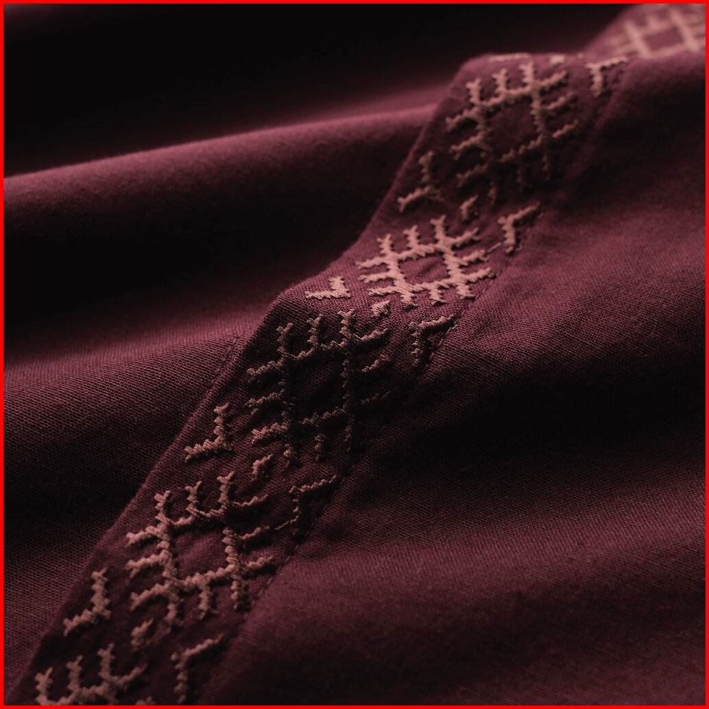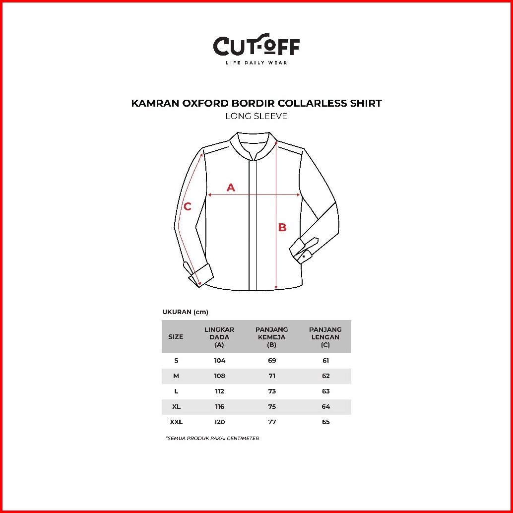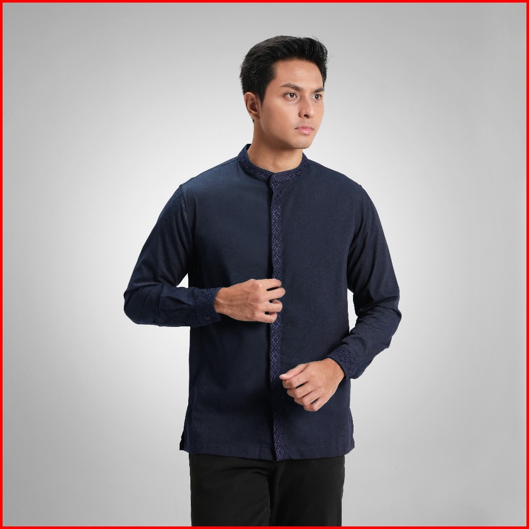 Cutoff Kamran Oxford Bordir Collarless Shirt Kemeja Koko Pria Lengan Panjang