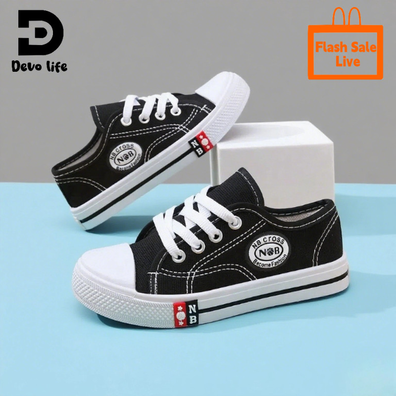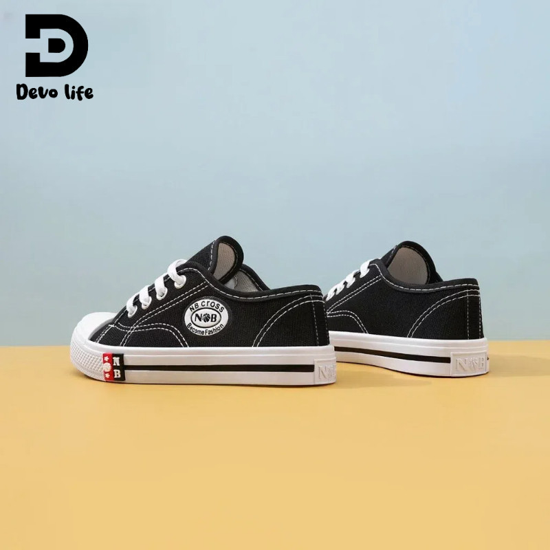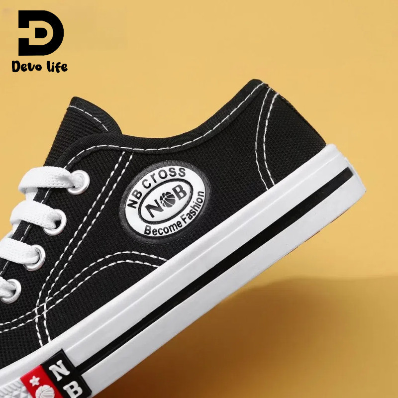 Devo Life - Sneakers Anak Sekolah Low Canvas Sepatu Cewek Cowok Formal Casual Ringan Tali