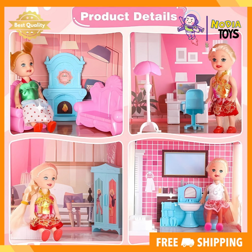 Nodia Toys 14 House Mainan Rumah Boneka 3D Princess | Mainan Rumah Villa Boneka Pink Castle | Mainan Rumah Rumahan Kasti