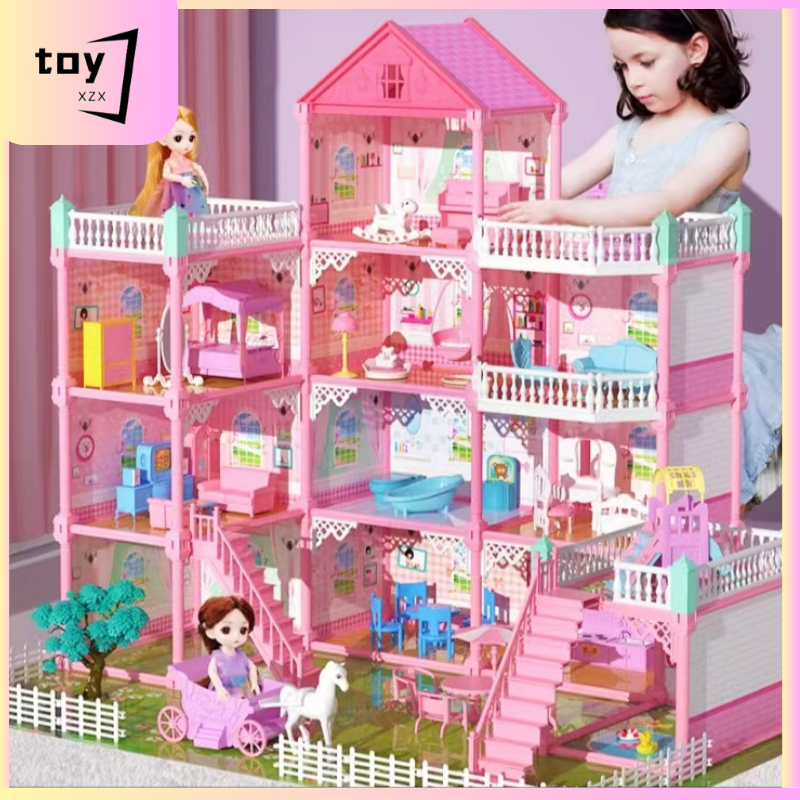 Mainan Rumah Boneka Princess Castle Rumah Princess Rumah Boneka Villa Princess Castle Dengan Lampu Dan Boneka