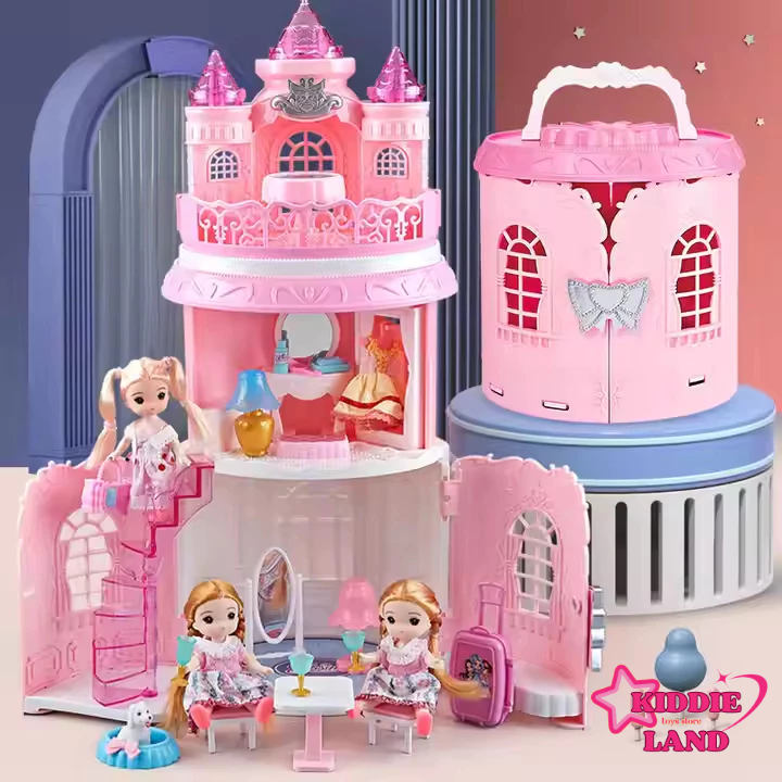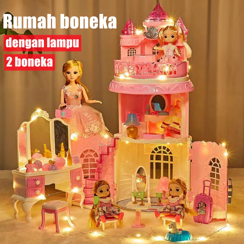 Mainan Rumah Boneka Perempuan 3D Princess Pink Castle dengan Lampu Hadiah untuk usia 2-8 tahun