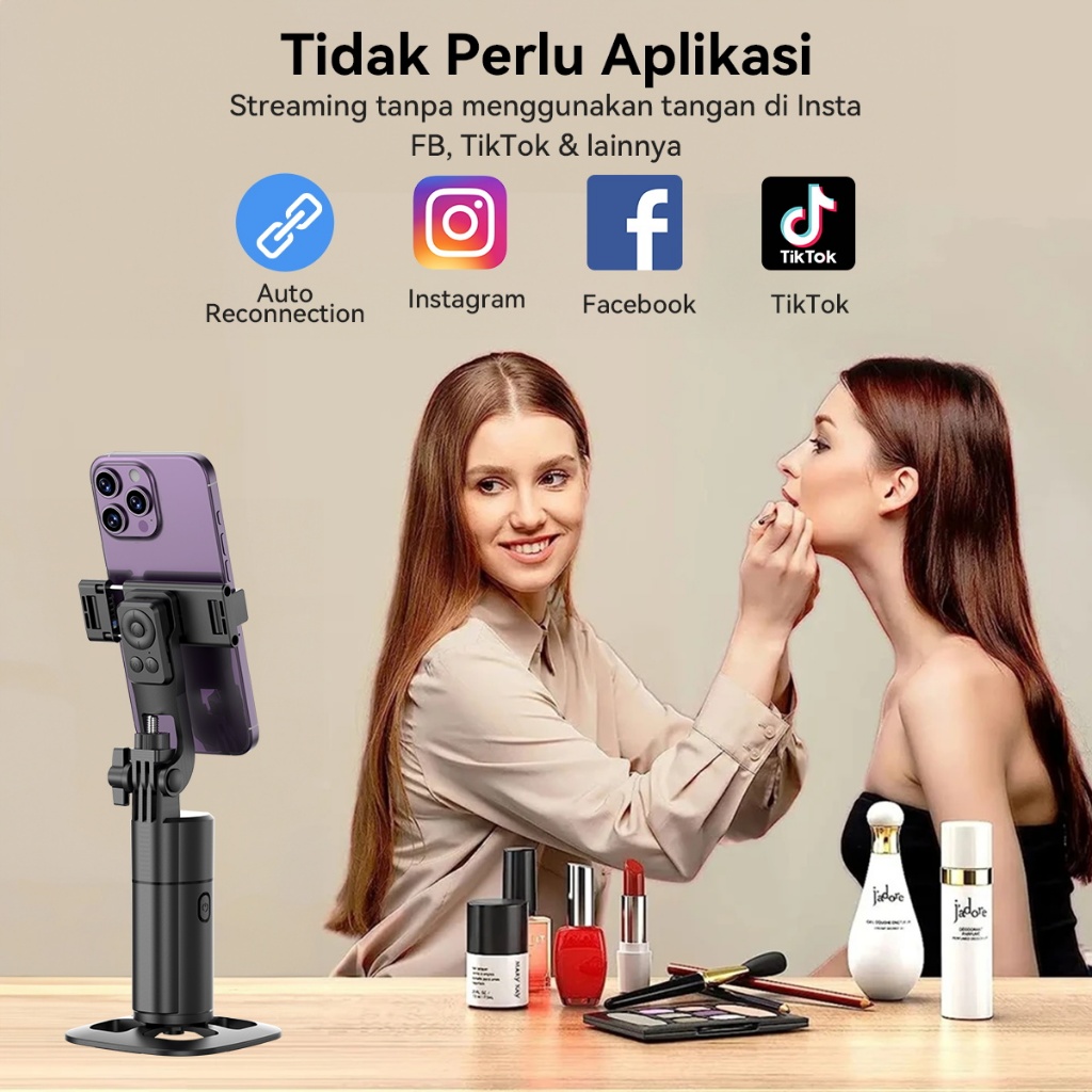 Jqvitek Auto Face Tracking AI Gimbal Stabilizer 360° Rotating Folding Stand Tripod Handphone HP Gesture Control Tripod B