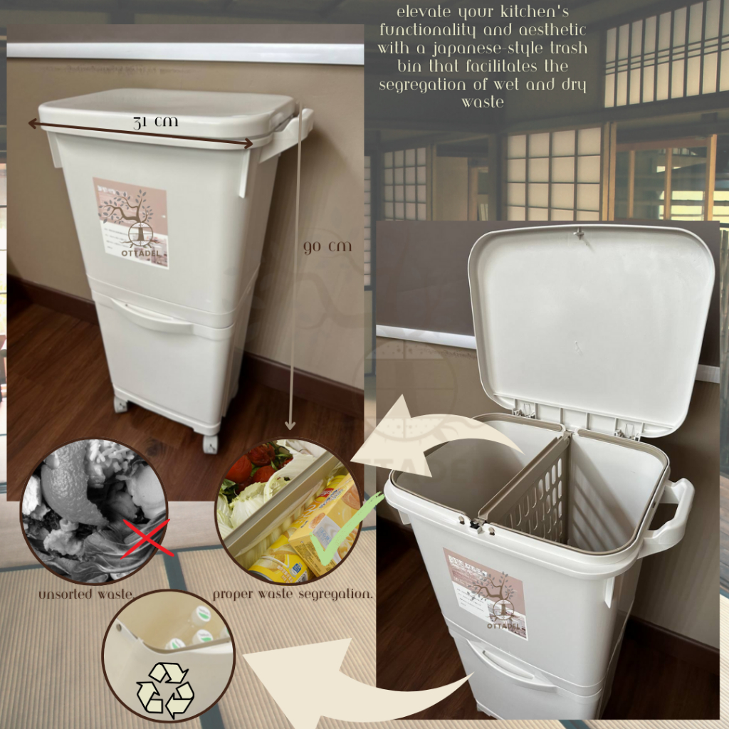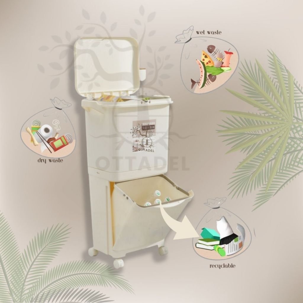 Ottadel 42/45 L Tempat Sampah Dapur RODA Pisah Basah dan Kering tanpa laci / Dry Wet Separation Trash Bin 1840