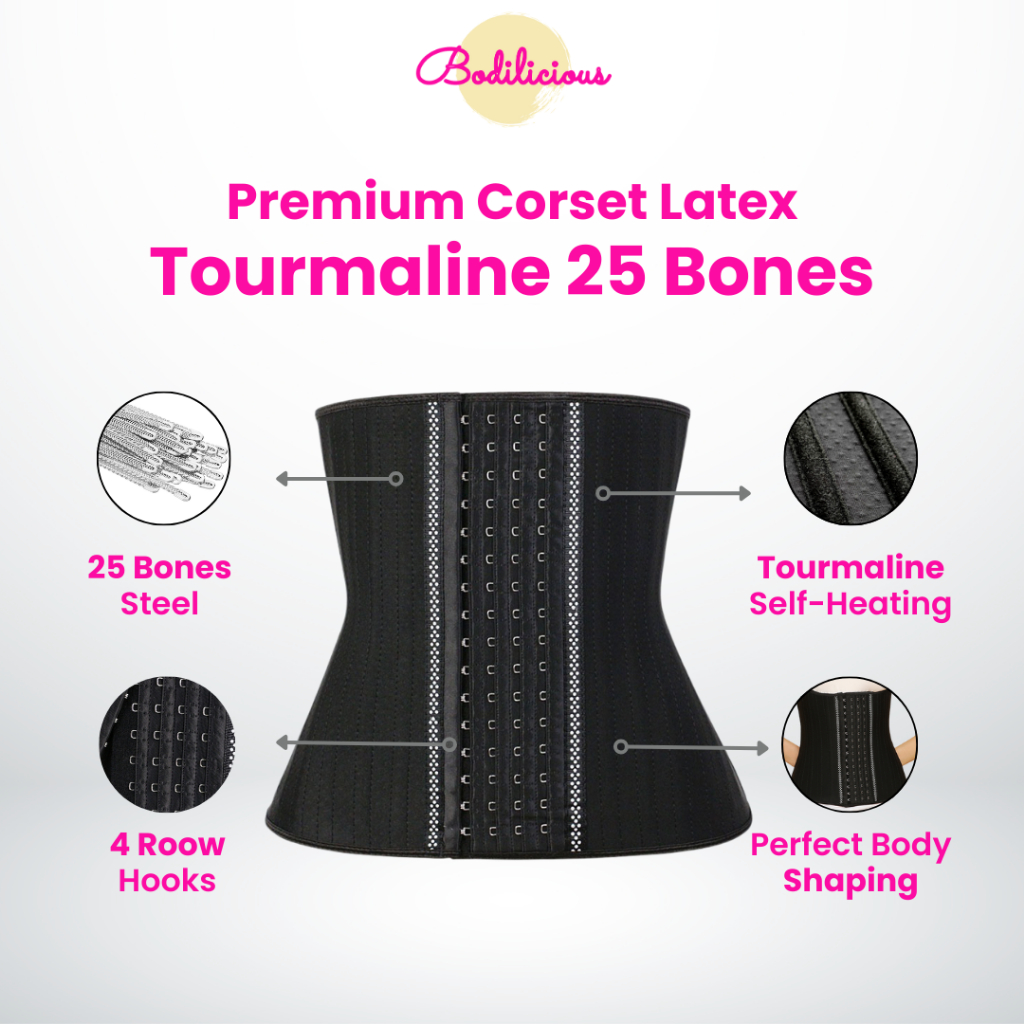 Tourmaline Korset Latex 29 Bones Waist Trainer Corset Turmalin pelangsing Pembakar Lemak 29 Bone korset pengecil perut p
