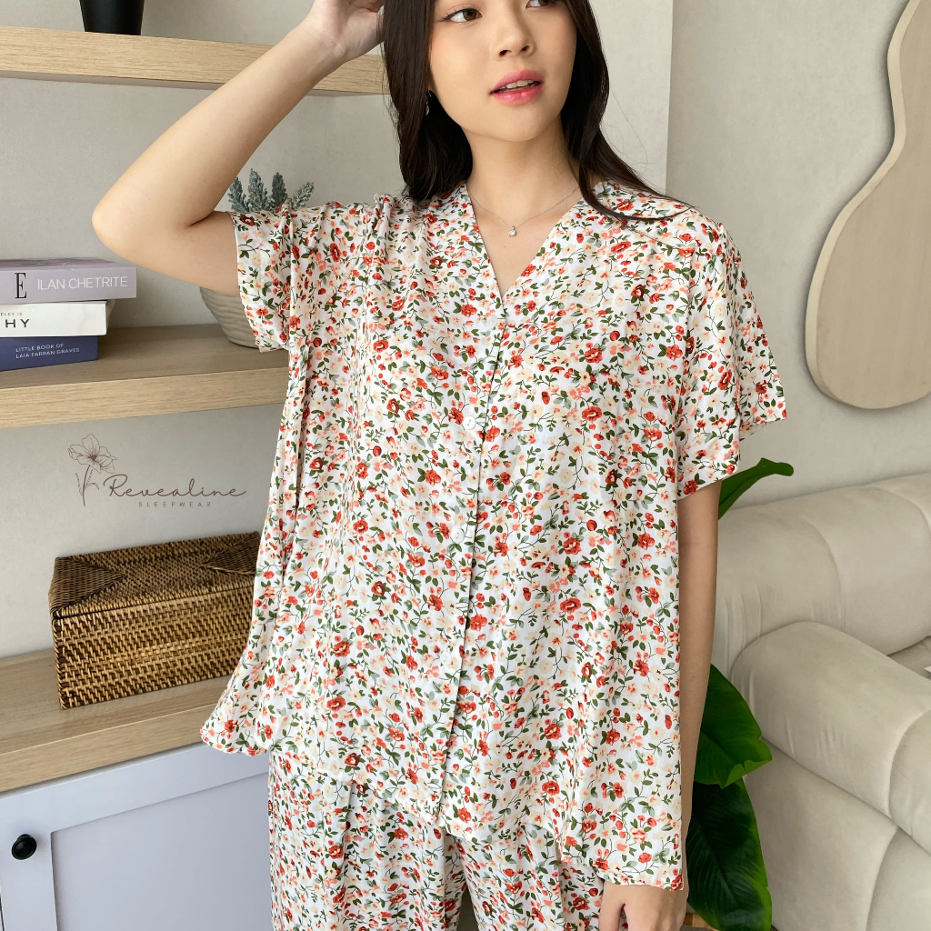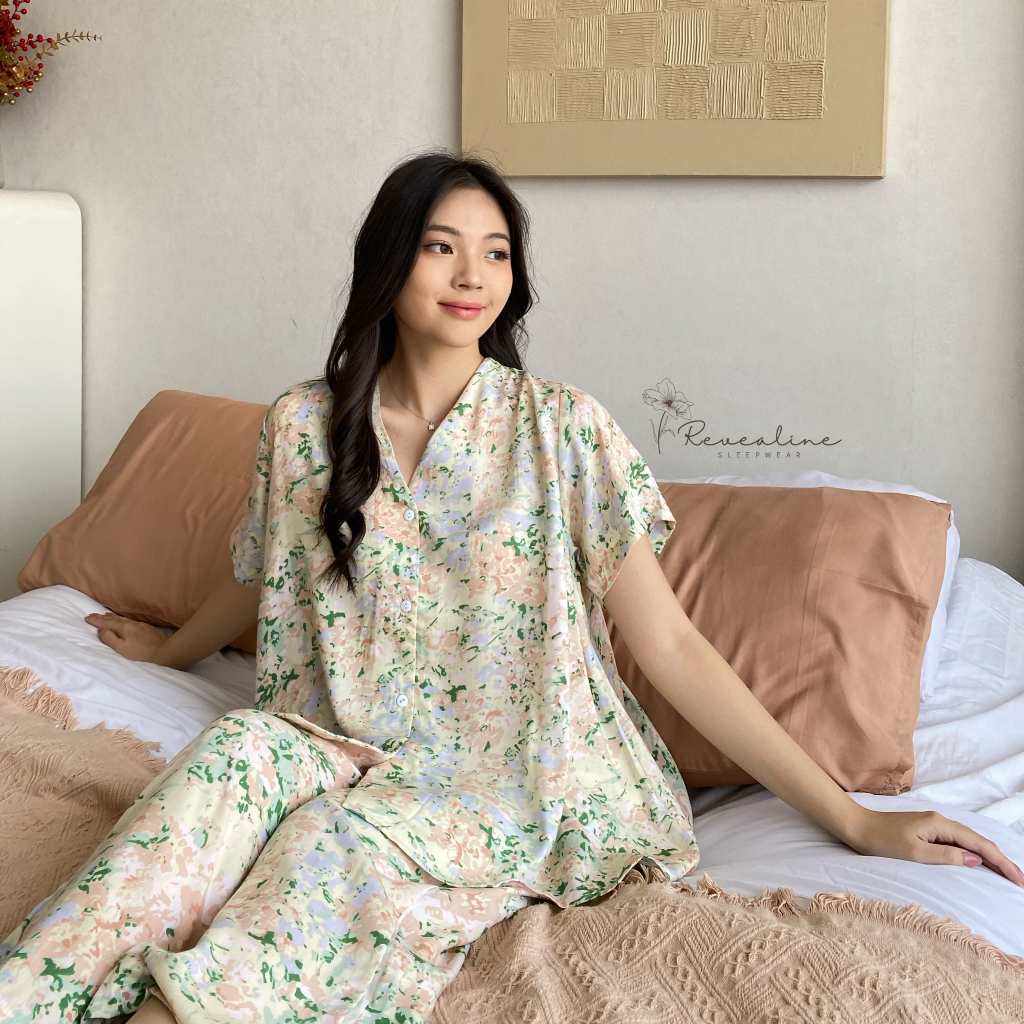 ALURA - Set Piyama Lengan Pendek Celana Panjang Premium Wanita|Baju Tidur Rayon Busui Bumil Friendly
