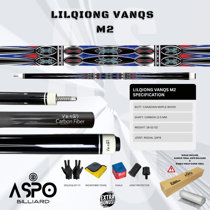 BLIARD ASPO Billiard Stik Biliar M1-M4 & M5-M6 Carbon Fiber 58 Inci Wrapless Grip Bonus Chalk Handuk