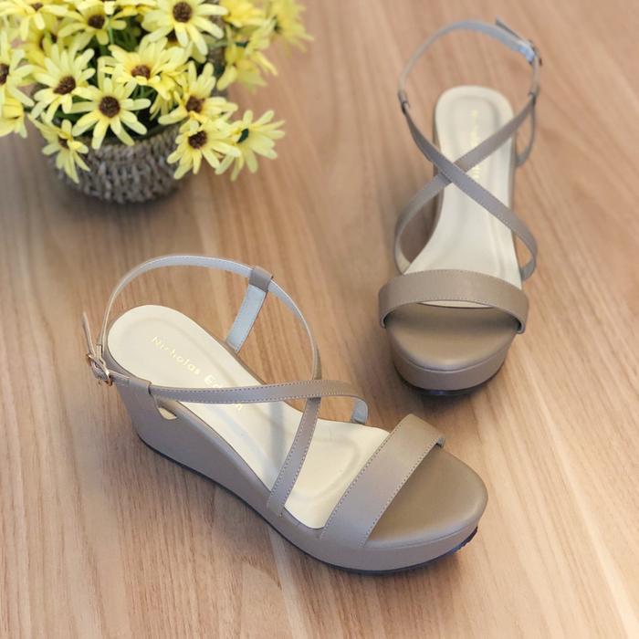 NICHOLAS EDISON WEDGES GWEN MOCCA SANDAL WANITA TALI SLINGBACK PEEP TOE TERBARU EMPUK NYAMAN - MOCCA, 36