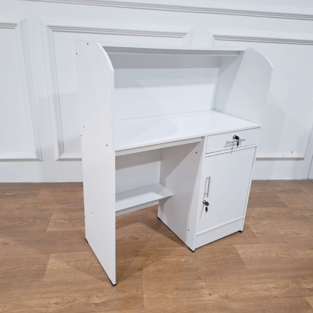 MEJA KASIR TOKO MEJA SALON MURAH ESTETIK MEJA PENYIMPANAN MEJA RESEPSIONIS