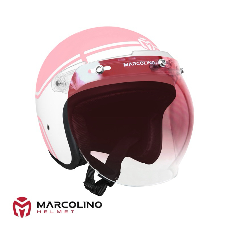[ Sereno Pink Edition Eith Visor ] Helm Bogo Retro Marcolino Pastel SNI