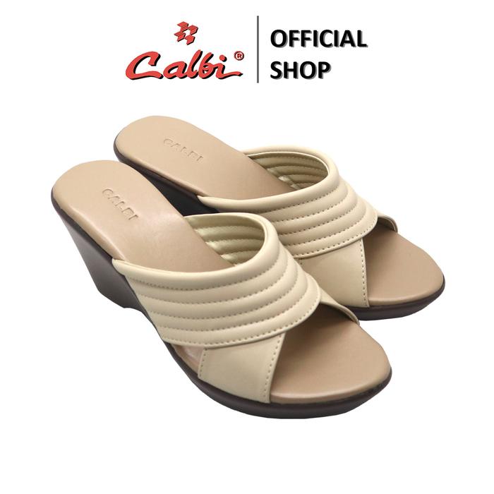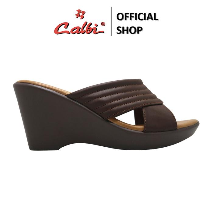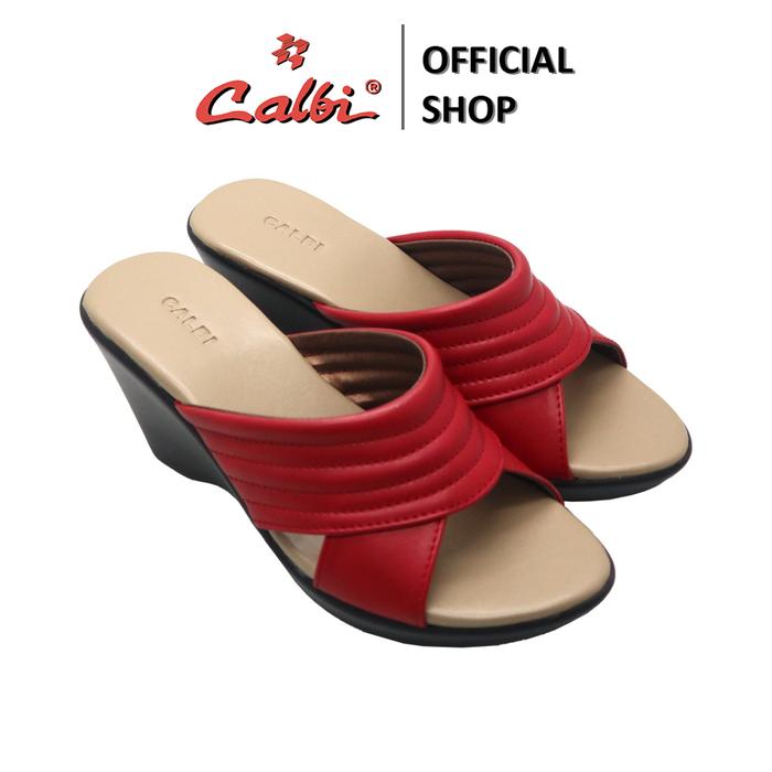 CALBI DEB 363 SANDAL WEDGES PEREMPUAN MOTIF SELOP 7CM FORMAL TERBARU PUFFY - MERAH, 36