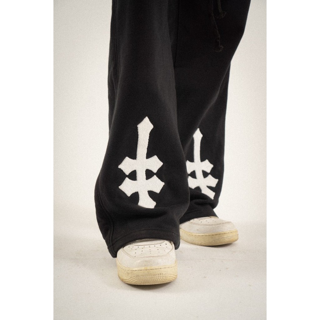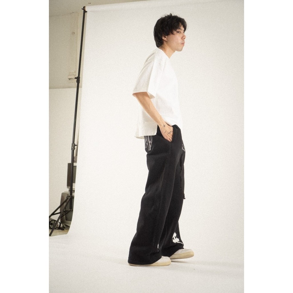 DENIMITUP H zigzag sweat pants - Jet black - Celana panjang pria