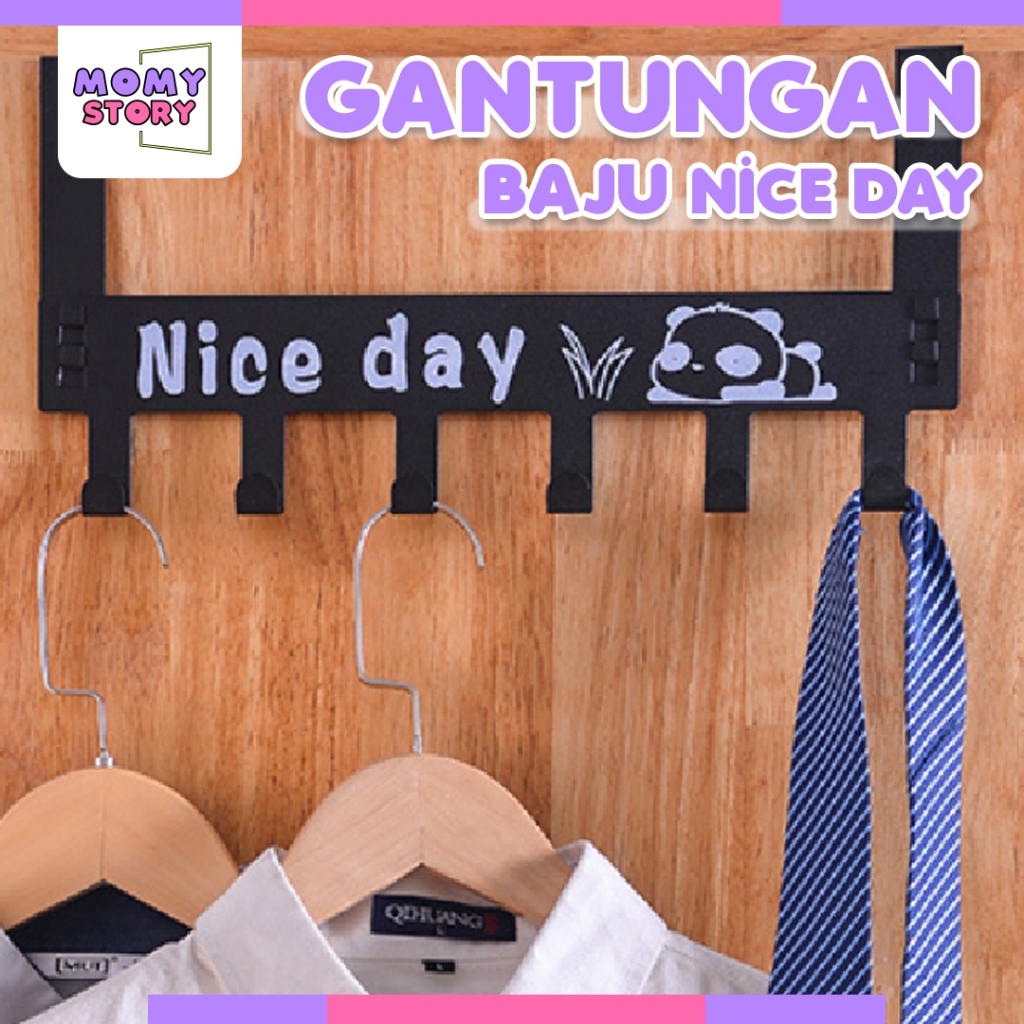 Gantungan Baju Tempel Pintu Minimalis HOOK NICE DAY Belakang Pintu Tanpa Paku Kuat 6 Kaitan Enudden