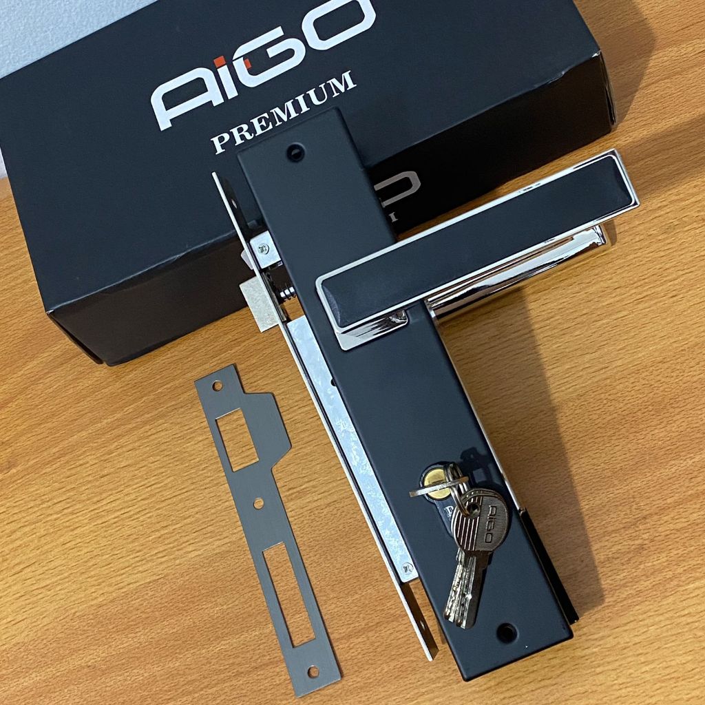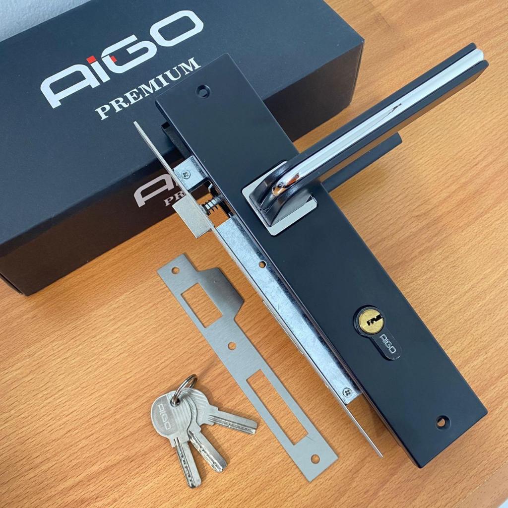 KUNCI PINTU RUMAH KOTAK 1 SET GAGANG PINTU BESAR 25CM HITAM DOFF