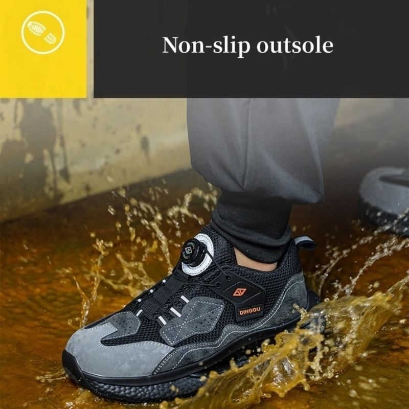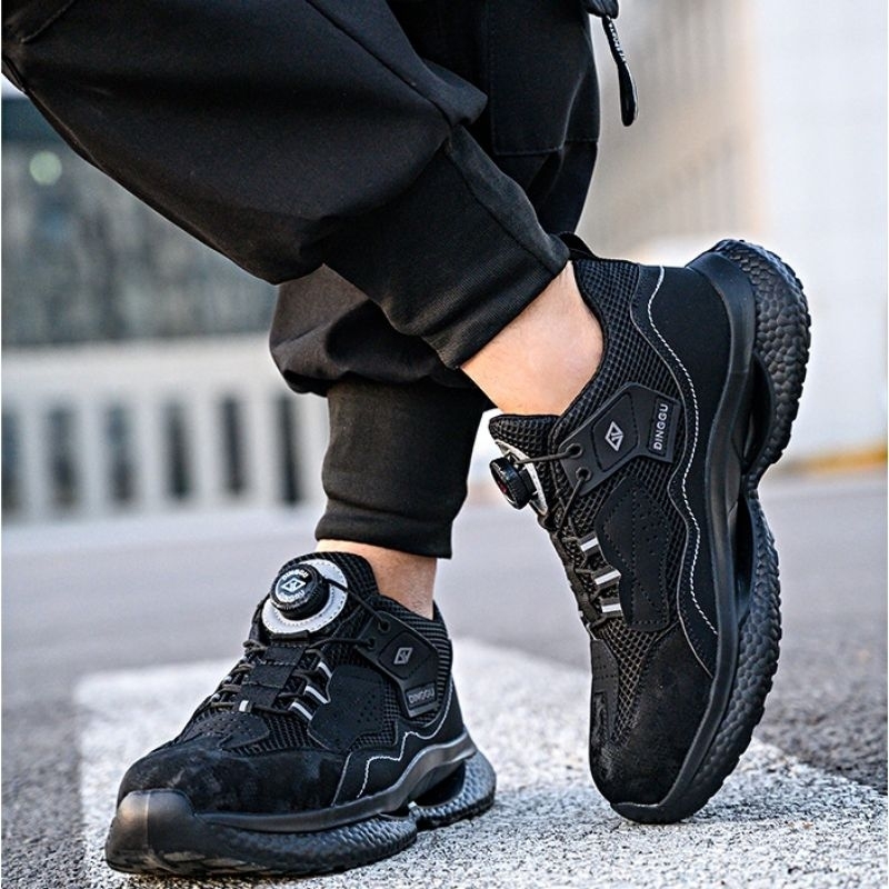 Sepatu Safety Sneaker Tali Putar Original DINGGU 1013 hitam abu proyek outdoor ringan anti slip anti paku