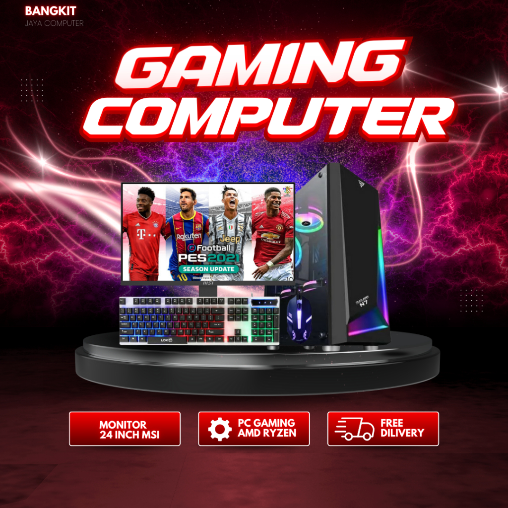 PC Gaming Fullset Ryzen 5 5600G Ram 16GB SSD/HDD Monitor 24 Inch Gaming Editing
