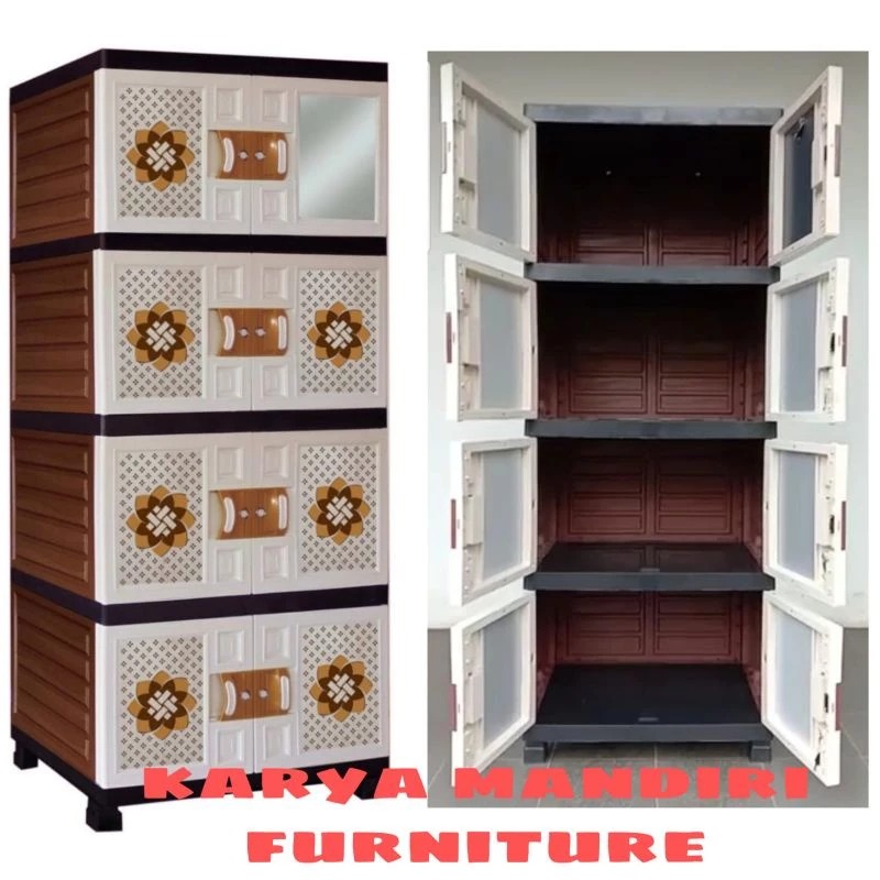 Lemari - rak baju - rak susun - JUMBO lemari pakaian baju plastik Full Kunci Full Warna cermin MOTIF BATIK MOCCA MASTER