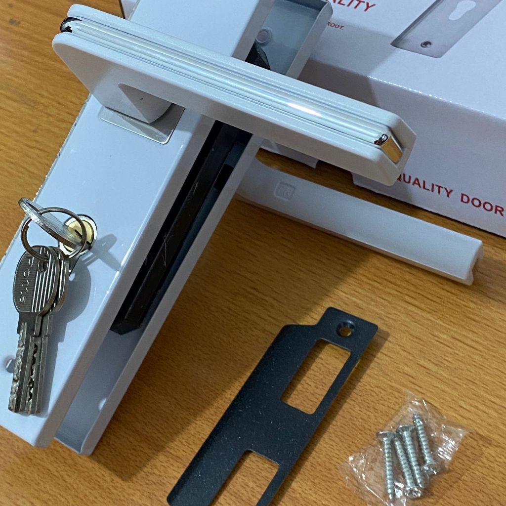 GAGANG PINTU PUTIH MINIMALIS/ KUNCI PINTU RUMAH SEDANG PUTIH 20CM 1 SET / HANDLE PINTU KAMAR