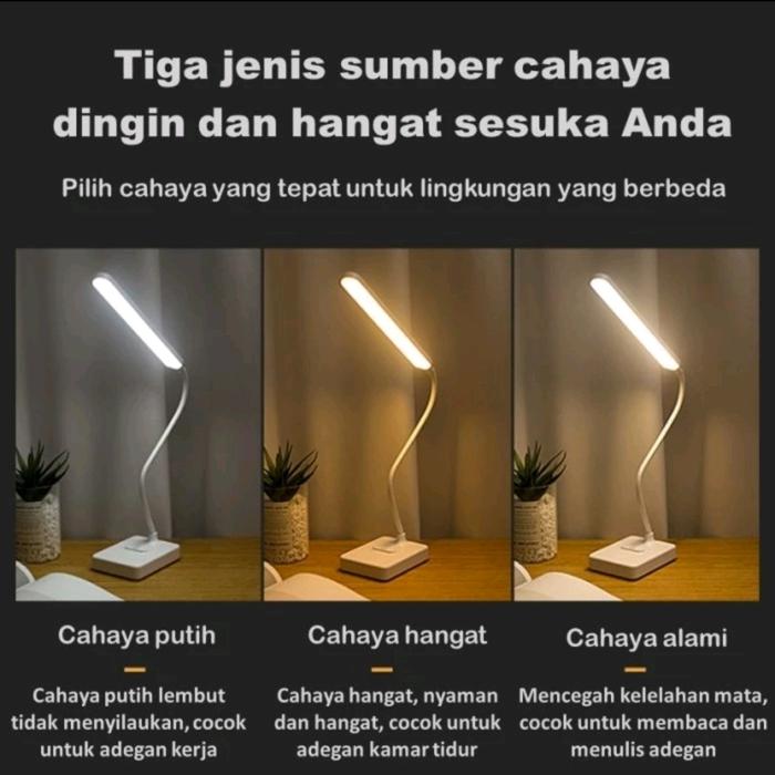 Lampu Meja Belajar Desk Lamp 30 LED Design Minimalis Lampu Baca Lampu Tidur Lampu Kerja 3 Cahaya - Rechargeable