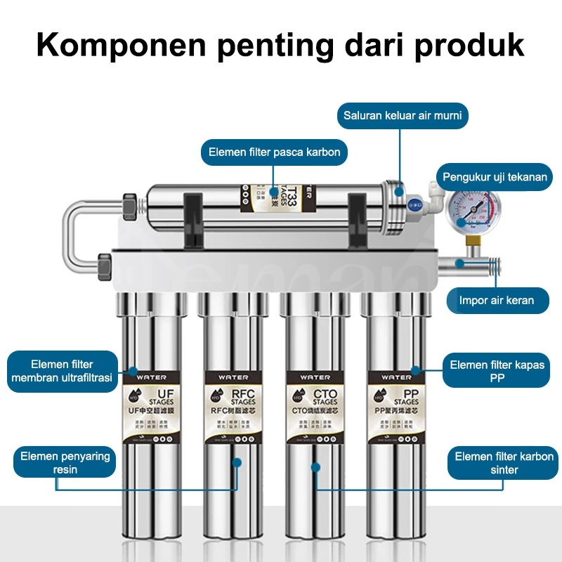 Mesin pemurni air minum langsung Filtrasi 5 tahap Filter air minum Laju aliran besar baja tahan karat Anti-virus dan ant
