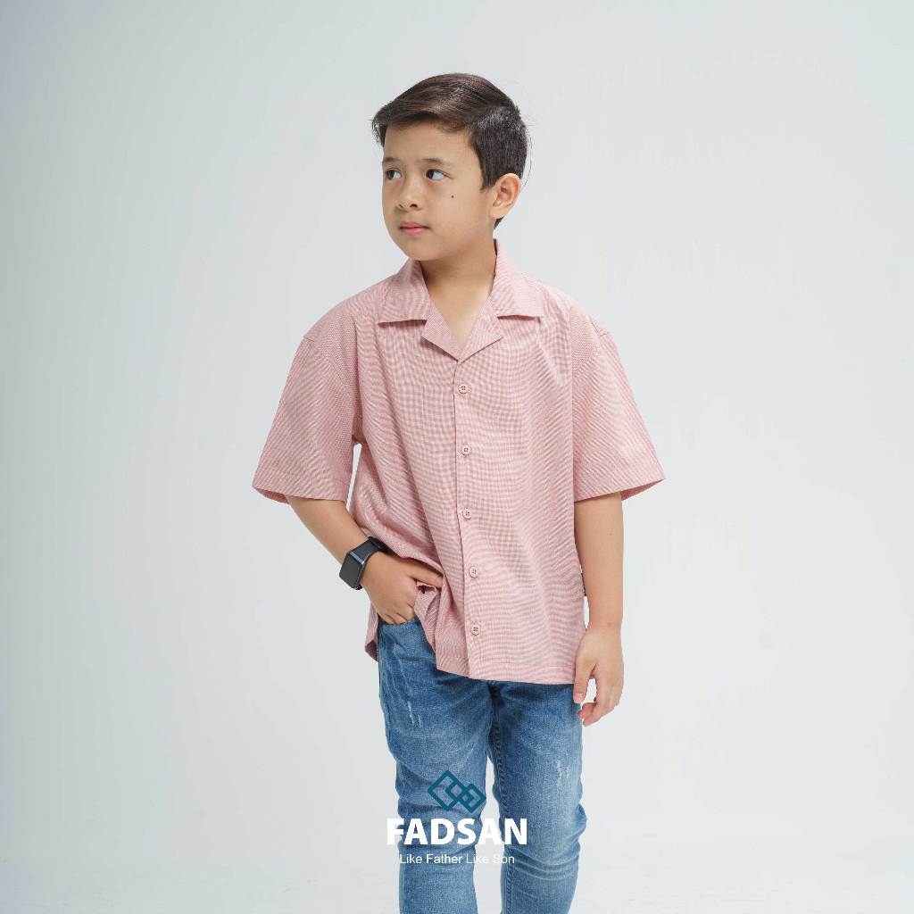 Baju Kemeja Couple Ayah Anak Laki Laki Lengan Pendek Polos Oversize Kazu Series - FADSAN