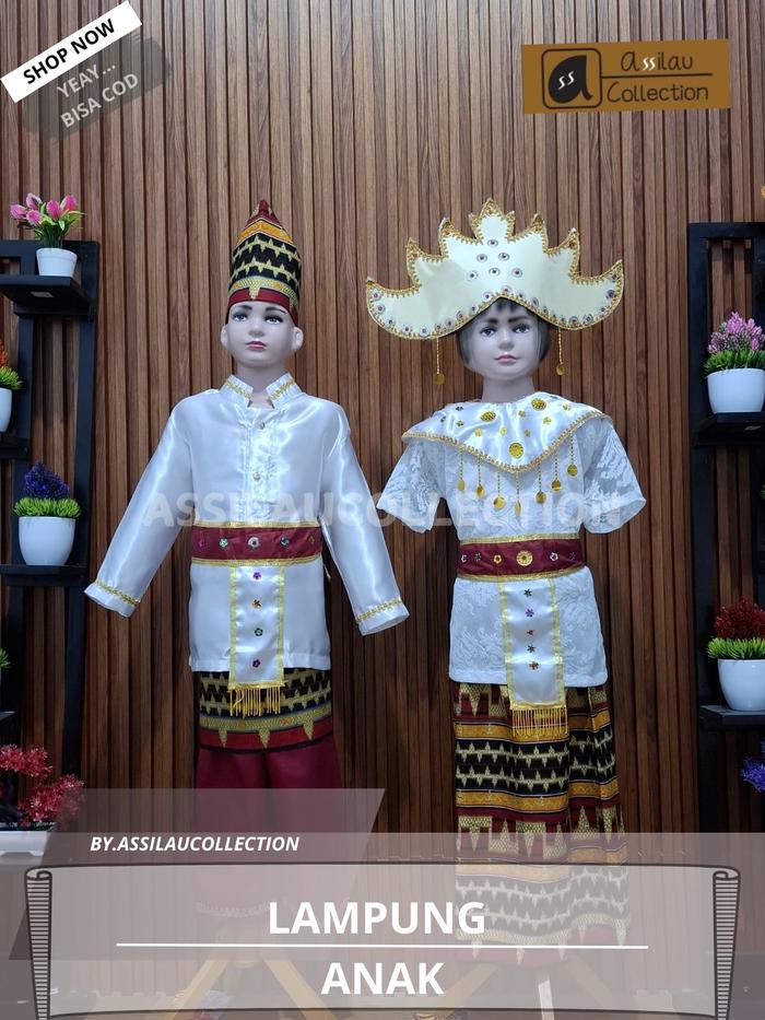 Baju Adat Lampung Anak satuan (Laki/Cewek) Pakaian Aksesoris