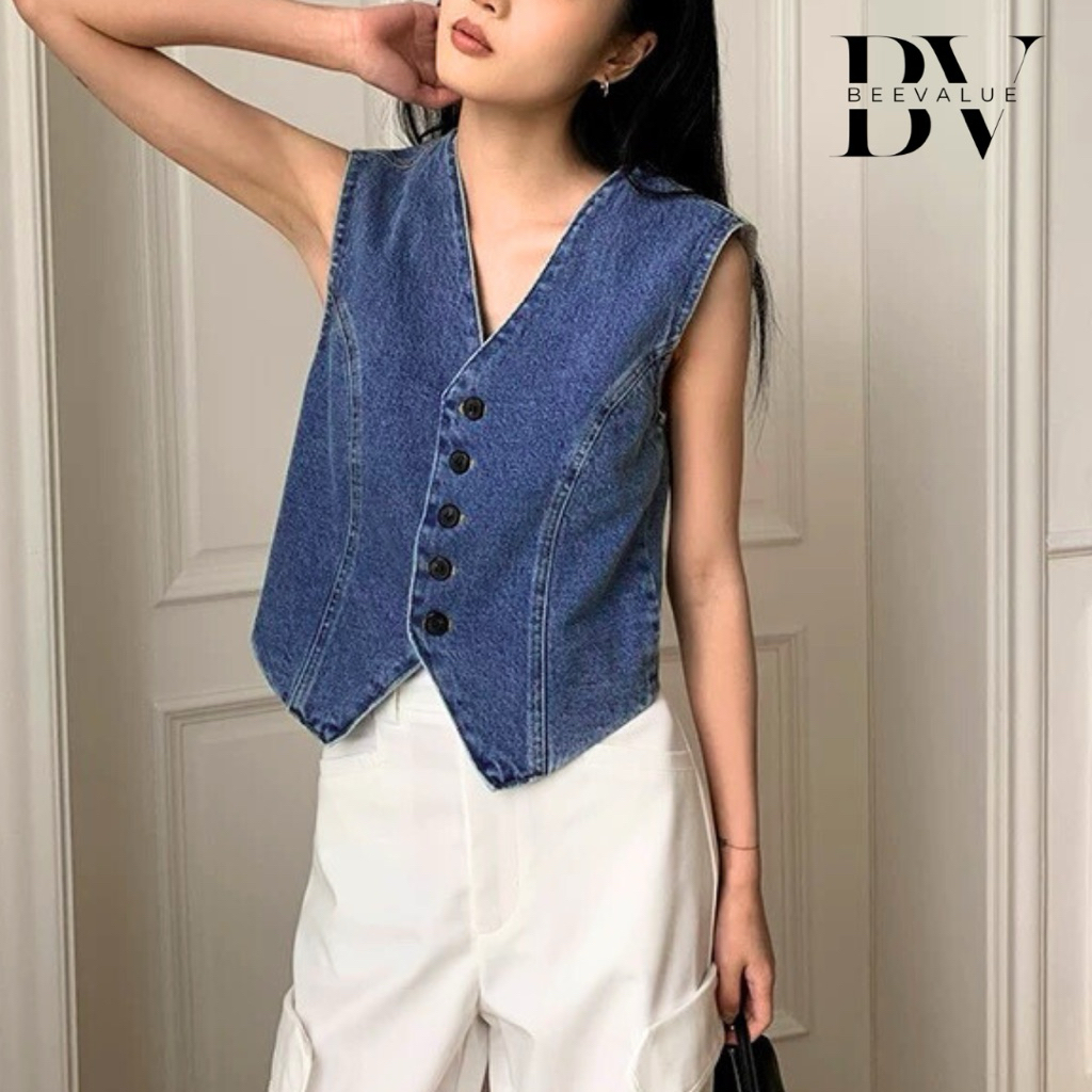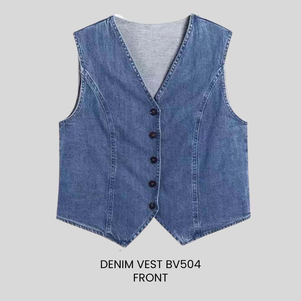 [Beevalue] Top Vest Denim Atasan Denim V-neck Sleeveless Wanita Outer Rompi Jeans Jaket Jeans Premium (BV504)