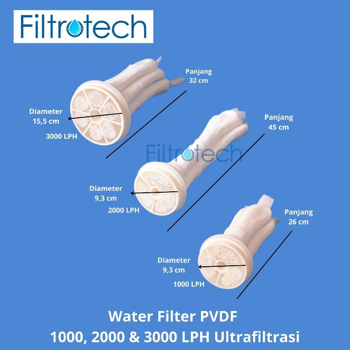 PVDF Ultrafiltasi Filter Air Water Pre Filter 1000, 2000 dan 3000 LPH