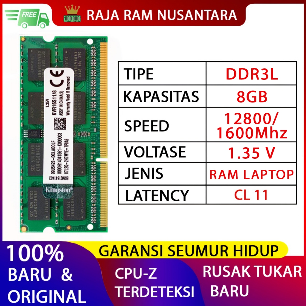 RAM LAPTOP KINGSTON DDR3L 8GB PC 12800 / 1600 MHz ORI RAM SODIMM 1.35v 8GB