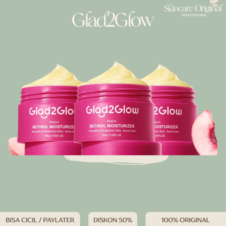 [Mall] GLAD2GLOW Glad 2 Glow Peach Retinol Moisturizer dengan kandungan campuran Retinol & HPR Wajah Mencerahkan
