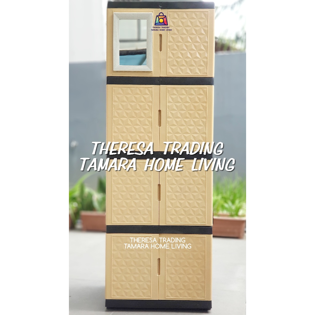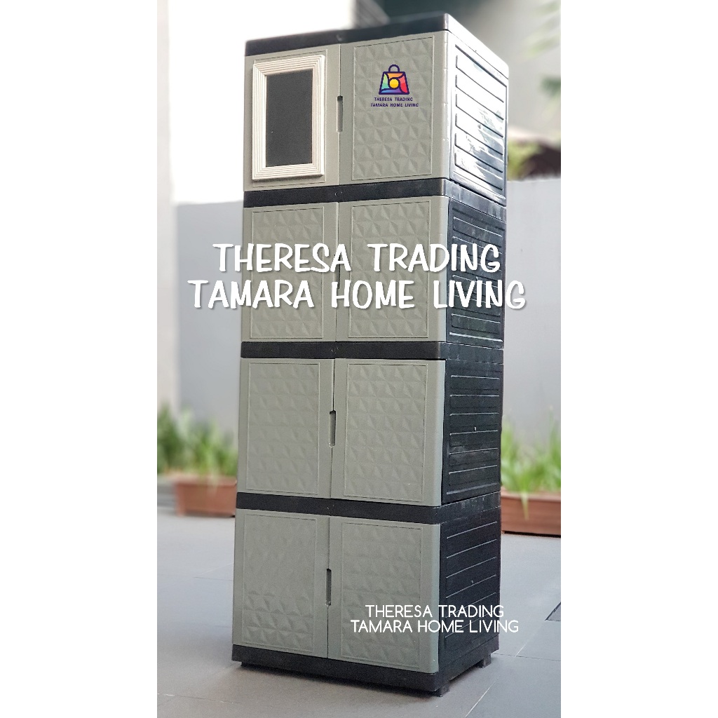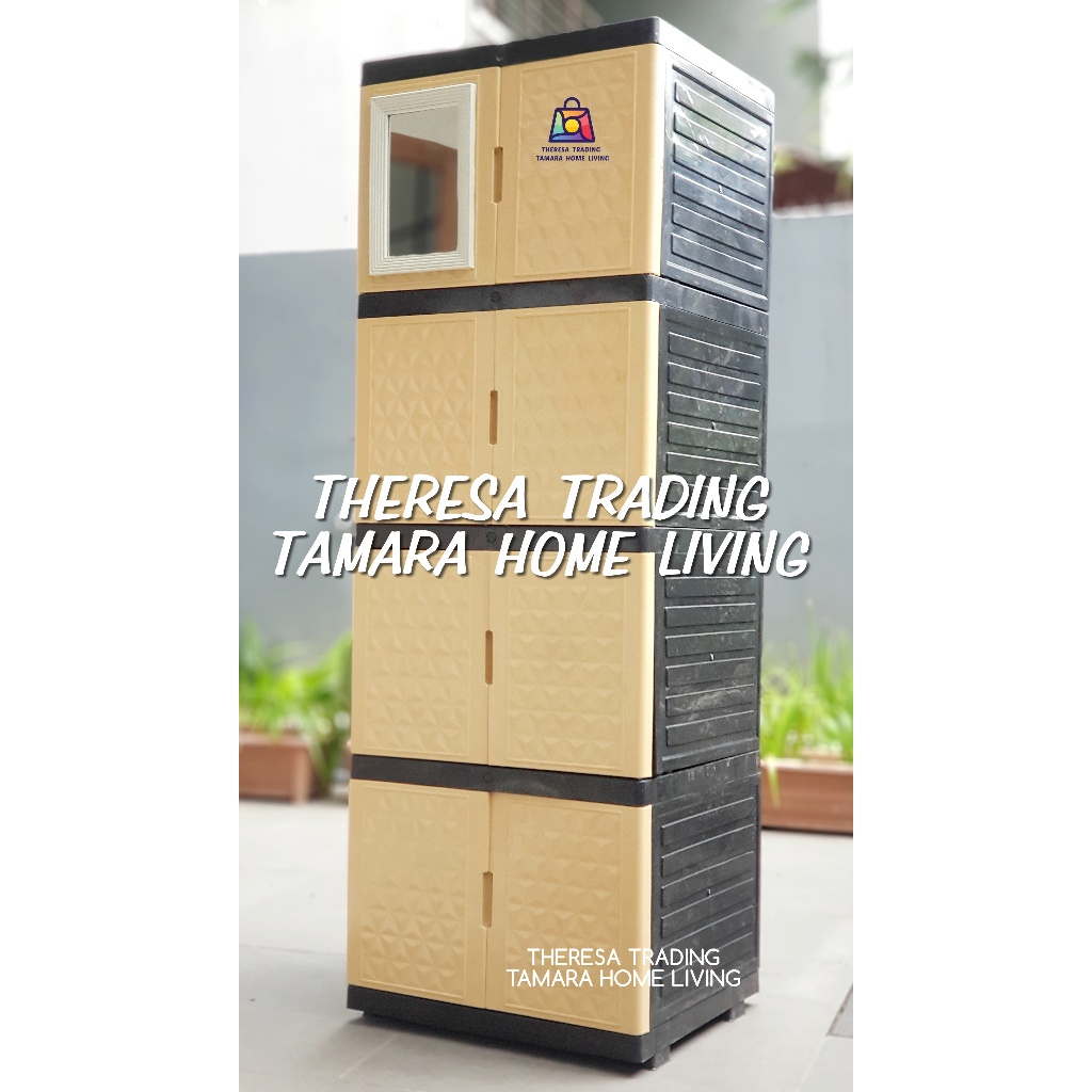 LEMARI PLASTIK SERBA GUNA DIAMOND KACA CERMIN 4 SUSUN 4 DESIGN PREMIUM