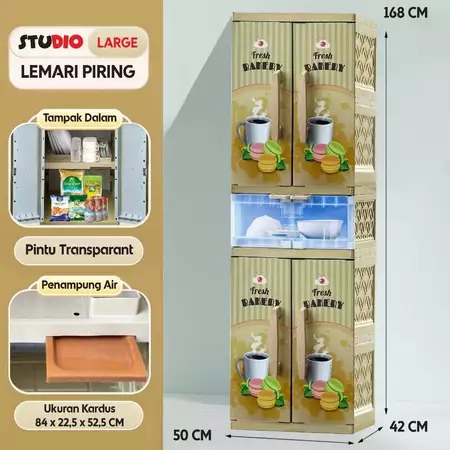 Lemari - rak baju - rak susun - lemari pakaian - Lemari Rak Piring + Nampan Pembuangan Air + Kaca / Tanpa Kaca Full Rak