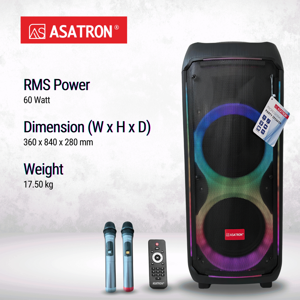 Asatron Crown Dual 10 Inch Bluetooth Party Speaker with 2 Wireless Mic